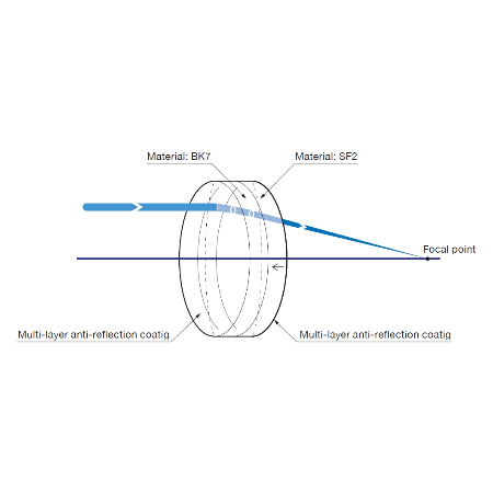 消色差双胶合透镜 由折射率和色散不同的2个透镜组成的胶合透镜,与球面单透镜相比,可以校正色差和球差。 可以作为望远镜的物镜或激光实验的准直透镜使用。