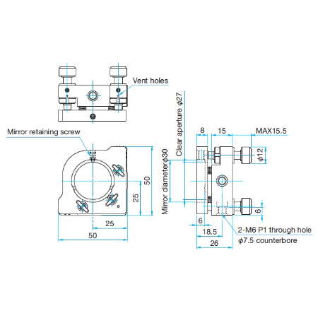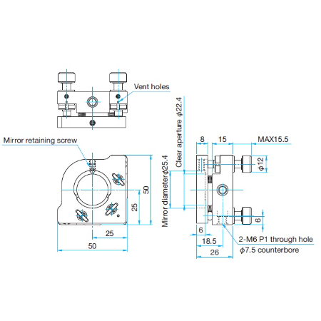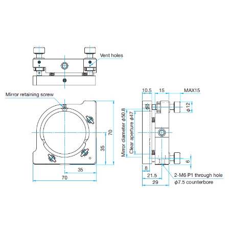 真空用镜架 真空腔内构建光学系统的出气量小的镜架。