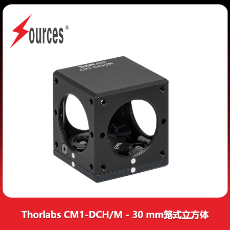 安装最厚3 mm的矩形二向色滤光片或其它光学元件 四个SM1(1.035"-40)螺纹端口用于安装发射和激发滤光片 兼容30 mm笼式系统 通过CM1-CC笼式立方体连接件可并排连接两个笼式立方体
