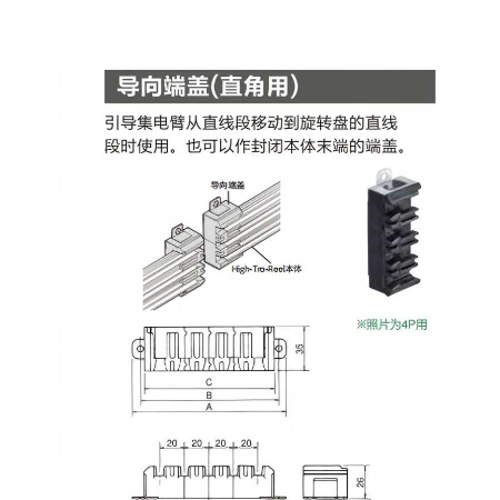 # 松下直角导向端盖DH5633/DH5634/DH5635/DH5636 产品说明(含锆晟平替方案) 松下DH5633/DH5634/DH5635/DH5636是HIGH - TRO - REEL非张力型滑触线专用直角导向端盖,核心用于3/4/5/6极滑触线的终端封闭与集电臂直角转向导向,适配仓储堆垛机、AGV、穿梭车等设备的滑触线转向/终端场景,保障集电臂平稳换向与线体终端绝缘防护,避免集电臂