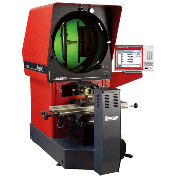 独一无二的双镜头座设计 垂直方向正影 全部可利用的16〞(400mm)直径屏 幕带精密十字刻划线及标定记号 重载,金属结构 16〞x 6〞(400 x150mm)测量行程双燕尾固定槽 工作台台面尺寸21-1/4〞(540mm) x 51/8〞 (130mm) 屏幕上附带固定对胶片用的压片 工作台承重110 lb. (50kg) 双强度(高/低)钨卤素轮廓照明 独特的三通道可调式光纤表面照明 操作者用表面照明遮光板 ±15º 可旋转工作台 快速更换,卡口式镜头座 Q轴在数显控制器