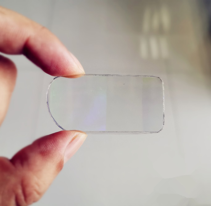 大视场:52°超大视场角的呈现,为用户营造更真实的情境沉浸感。 超轻薄:仅5g的重量,极致轻薄,更符合人体工程学,显著减轻用户佩戴负担。 高清透:高达85%的透光率,如普通镜片般清透,极大降低了光学系统对外界视线的阻挡。 可量产低成本:通过控制材料的配方以及制备工艺,可以做到大规模的量产,从而很大程度上较低了成本,具备大批量向消费市场推广的可能性。