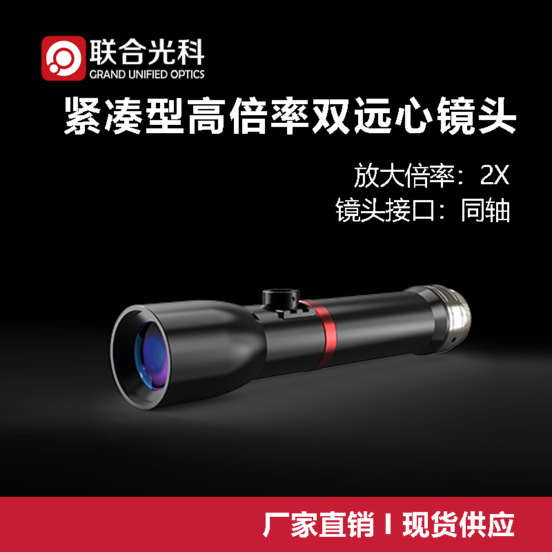 紧凑型高倍率双远心镜头 放大倍率2X 工作距离130mm 同轴/非同轴