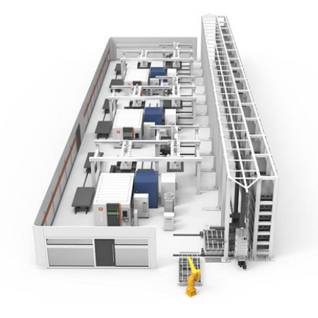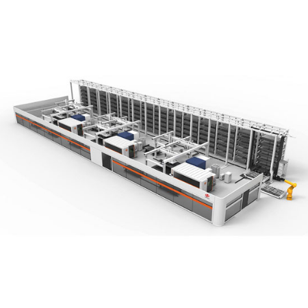 激光切割自动化料库由一套料库系统,一套自动上下料系统,一套生产线运行,监控系统构成,可适配1-3台激光切割机床。