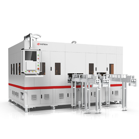 用于方型动力电池密封钉焊接生产,可实现电池入料、激光测高、盖板扫码、激光清洗、密封钉上料、激光焊接、焊缝检测、电池出料等工艺流程。