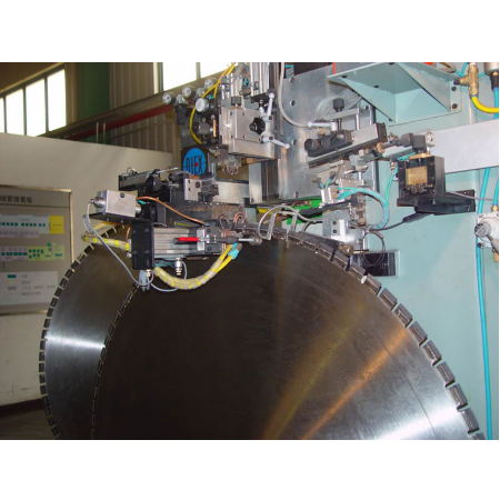 华工激光锯片刀头激光焊接机,采用先进的激光焊取代传统的烧结及钎焊工艺,使金刚石刀头与基体获得极高的结合度,彻底解决传统锯片刀头容易脱落的问题。该机主要用于锯片刀头焊接,同时可以对薄壁钻进行焊接,具有一机多用的功能。