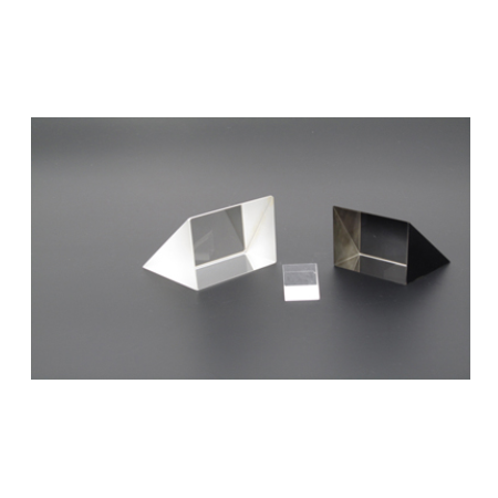 直角棱镜一般用于弯曲图像路径或将光路转折90°。将两个直角棱镜结合在一起也可以合成图像、偏移光束。对较大角度入射的应用,建议采用斜面铝膜棱镜。欧普特科技提供多种尺寸的直角棱镜,镀膜选项包括铝膜及增透膜等。