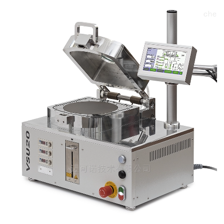 可编程真空回流焊炉,加热区域直径为200mm 真空回流炉配备有一个由实心铝制成的热板,上面涂有陶瓷。另一个水冷板安装在热板下方。在冷却时,将冷板抬起并压在热板上,从而迅速冷却。此功能还可以在真空下进行冷却。