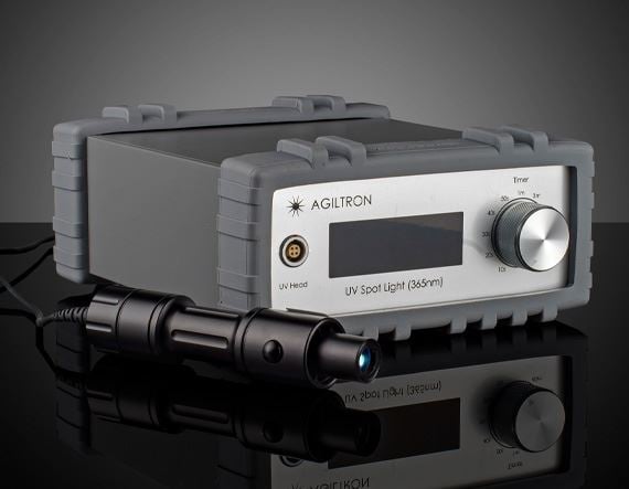 手持UV固化光源提供一系列输出功率和光束直径可选,以*大限度地满足用户的应用需求。 UV固化激光笔 #17-319 和 #20-617 为无线、手持、电池电源供能的型号,电池能支持设备连续两小时输出至高 2W/cm² 辐照度的UV光。 UV固化灯 #26-821 与 #12-679 为有线手持型号,光源输出UV辐照度两挡可调,分别为 1.4W/cm² 或 5.5W/cm² 。 有线固化灯可通过手持聚光灯上的按钮或附带的脚踏板进行控制。 手持式紫外固化 LED 光源是光学车间和实验室对染色凝胶进行紫外固化、x毒或荧光处理的理想之选。