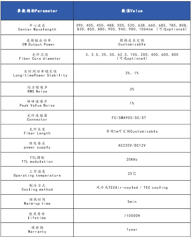 我司专业研发生产高稳定性光纤传输激光器系统,匹配专用调制模块和高精度驱动电源,性能优异,品质可靠。产品适用波长范围为405nm~1064nm,输出功率可按需定制。此外,客户可按需选用单模、单模保偏、多模光纤、TEC温度控制、风冷、尺寸、连接器等。产品操作简便,免维护,使用寿命长。