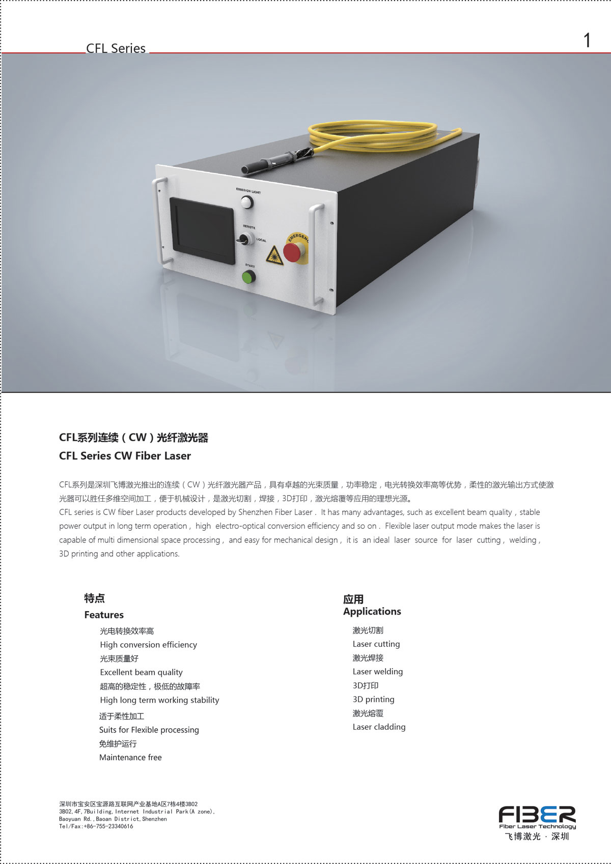 CFL系列是深圳飞博激光推出的连续(CW)光纤激光器产品,具有卓越的光束质量,功率稳定,电光转换效率高等优势,柔性的激光输出方式使激