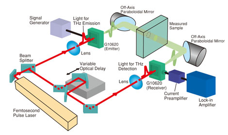 *为了获得这些数据,在发射和检测模块之间使用了一对抛物面镜。