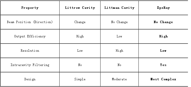 Xperay外腔式可调谐半导体激光器拥有专利的激光腔设计对比于传统Littrow腔和Littman腔设计有着多种明显的优势:高输出耦合效率、高波长调谐精度、极高的光谱纯度,并且更重要的是所有这些优势均不以牺牲激光器性能为代价。