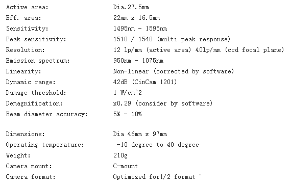众所周知,1495-1595nm波段的激光光束分析一般采用InGaAs探测器阵列。但nGaAs探测器阵列得缺点也是显而易见的,价格昂贵,且分辨率低。