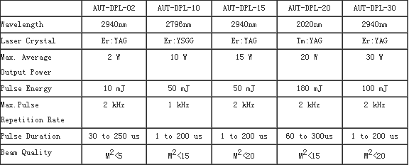 AUT-PL系列中红外激光器是新一代的2~3um半导体泵浦脉冲激光器, 输出波长包括2020nm, 2796nm与2940nm,平均功率可达30W。得益于优秀的光束质量与3um波长激光良好的吸水特性,该系列激光器在生物医疗与工业加工方面有着令人惊喜的效果!