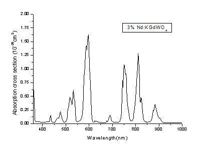 图2. 3%Nd:KGW 的反射光谱 图3. 3%Nd:KGW 的吸收光谱