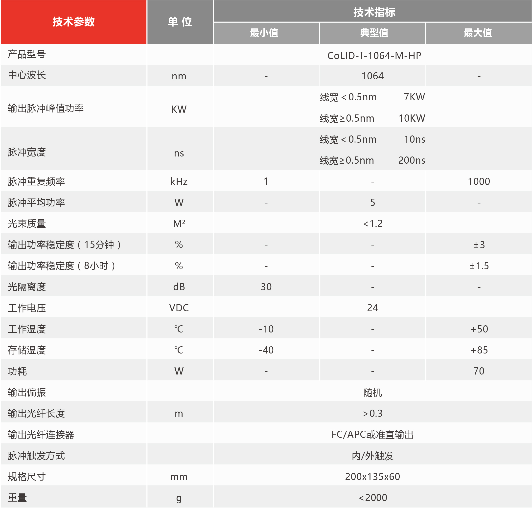 上海瀚宇CoLID系列1064nm高功率短脉冲激光雷达(LiDAR)光源是一款高脉冲能量输出激光光源;采用主振荡器加功率放大器(MOPA)结构设计,经过优化设计的多级光放大,实现高峰值功率,ns级的脉宽激光输出,是激光雷达、遥感勘测、激光测距的理想光源。