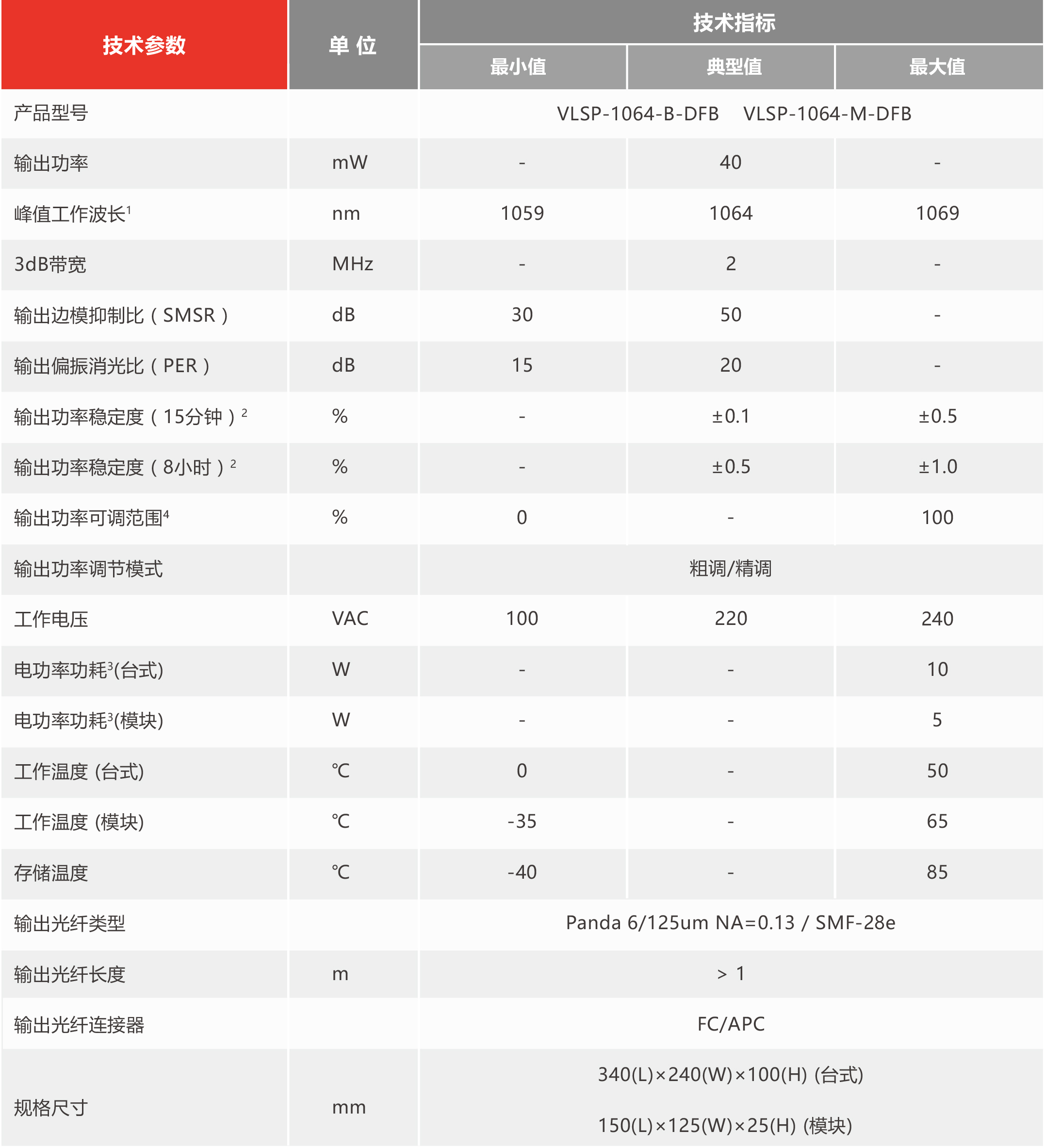 指标说明• Nd:YAG激光器种子源