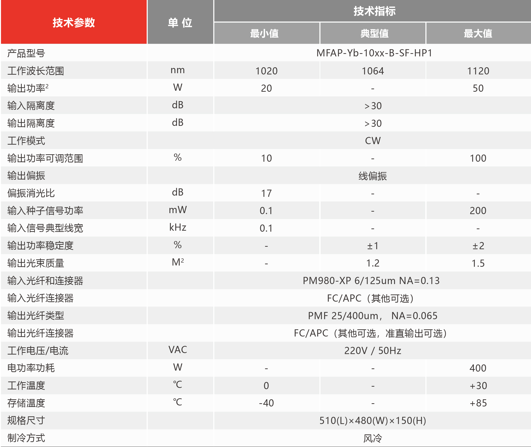 上海瀚宇MARS系列高功率台式单频保偏光纤放大器是针对超窄线宽、单频信号光(例如基于DFB,DBR原理制作的光纤激光器)而专门设计的功率放大器。该款放大器能够把kHz量级的低功率光信号放大到高达100W量级的输出功率,并能很好地保持输入信号光的光谱特性。MARS系列放大器内部采用了高功率、高性能的多模泵浦源,采用双包层光纤放大技术,全保偏结构的一体化设计,输出功率连续可调。MARS系列台式光纤放大器是一款完整的Turn-Key系统,内部采用微处理器控制,前面板设有激光开启开关和功率状态LCD显示,以及输出功率调节旋钮。