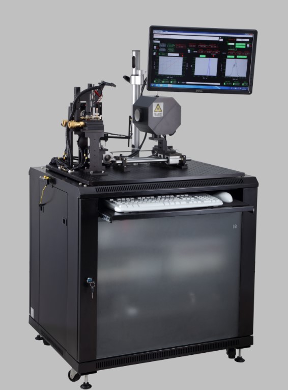 在可控温度的工作台上,对封装之后(COS、TO56、C-mount、F-mount、CCP等封装形式)的半导体激光芯片器件自动测定其光功率、电气、波长、FFP等特性。