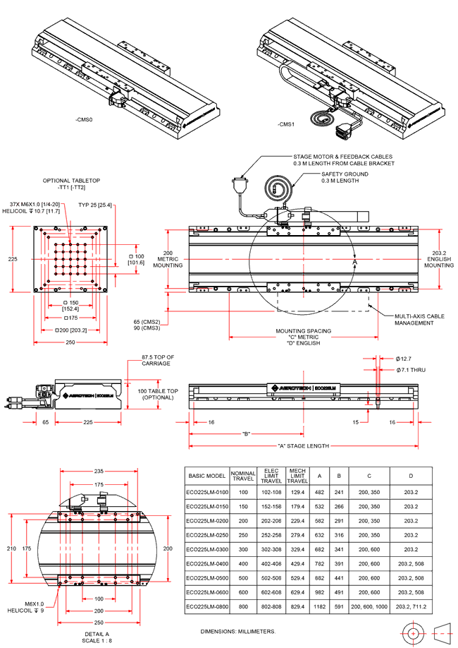 Option Description -CMS0 No external CMS, motor/feedback connector bracket on carriage -CMS1 External CMS for single axis -CMS2 External CMS for lower-axis of two-axis ECO (XY) assembly -CMS3 External CMS for lower-axis of two-axis (XZ or XT) assembly -CMS4 External CMS for upper-axis of two-axis ECO (XY) assembly Lifting Hardware (Optional)