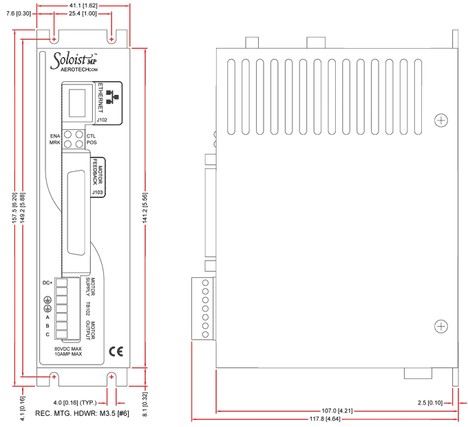 For stepper motors only, one-half of bus voltage is applied across the motor (e.g., 80 VDC supply results in 40 VDC across stepper motor). "Keep Alive" supply. Output voltage dependent upon input voltage. Peak value of the sine wave; rms current for AC motors is 0.707 * Apk. Requires I/O option. Requires external relay to remove motor supply power.Specifications