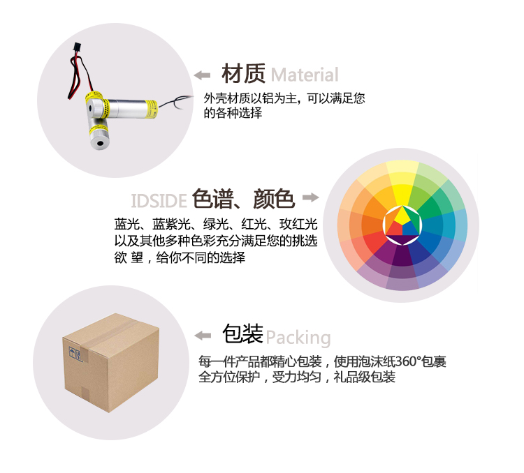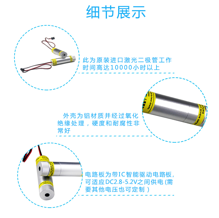 光斑描述:最小光斑直径Φ0.2mm,光斑大小可以根据使用距离调节