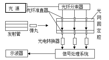 枪炮弹速测量仪的测量原理是在弹丸飞行路径的不同位置上安装激光束,当弹丸飞过时将依次遮断激光束,读出弹丸遮断激光束的时间,弹丸尾部脱离激光束时示波器也会给出相应的信号,可以得到弹丸尾部脱离激光束的时间差,再利用激光束之间的距离就可得到弹丸的平均速度。也可以利用电磁线圈实现,枪炮弹速测量仪有激光式和电磁线圈式两种。