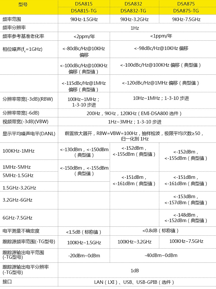 显示平均噪声电平DANL 最低达-161 dBm(典型值)
