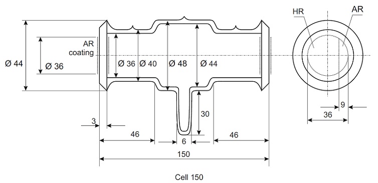 碘吸收气体池可以提供精确的波长参考。该气体池有石英玻璃制成,通光窗口与气体池主轴垂直。通光窗口面型可达1/10波长,镀增透膜,532nm波长反射率小于0.1%。 技术指标
