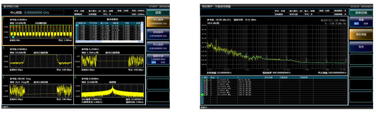 通用射频信号分析与评估:可作为多用途多功能的通用信号与频谱分析仪表,提供频谱分析、谱功率测试、相噪测试、瞬态分析等功能,为宽带信号的测试提供高灵敏度、大动态范围、高精度、高效率的解决方案,可直接用于测试诊断系统的集成。