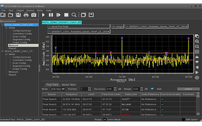 DSA700拥有EMI滤波器(6 dB)与准峰值检波器,使EMI预测试/诊断更为准确,更可使用配套软件完成完整测试和生成报告。