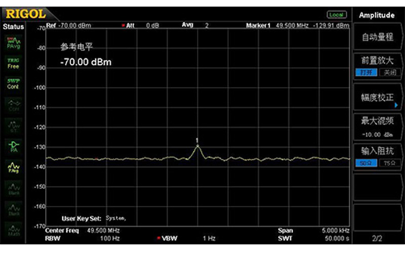 DSA705 | 100kHZ~5000MHz | 100Hz~1MHz | -80dBc/Hz@10kHz | -130dBm(归一化到100Hz) | 否 |