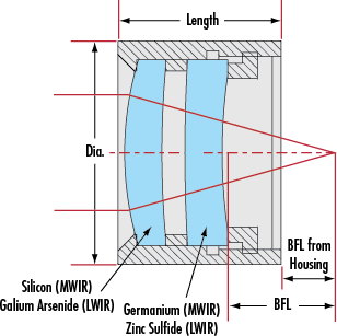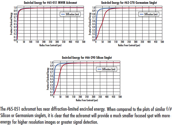TECHSPEC®红外 (IR) 消色差透镜是处理 3-5μm 或 8-12μm 光谱区域的设计师和研究人员的理想组件。这些透镜设计为在全光谱范围内提供近衍射极限的性能,是 FTIR 光谱、热成像以及可调谐 QCL 和其他红外激光器等应用的理想之选。双片透镜具有精密的光学级晶体,按照专业的空气间隔排列在阳极氧化铝桶内。所有这些 IR 透镜都经过镀膜处理,以便在其指定的光谱区域内获得最大的能量吞吐量。与典型的红外单片透镜相比,TECHSPEC® 红外消色差透镜提供显著提高的性能,使工业、医疗、科学和国防应用中的透镜使用者能够充分使用红外传感器的动态范围和量子效率。