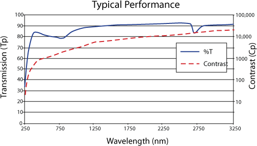 超带宽金属线栅偏光镜,在两个熔融石英玻璃窗口间嵌入细铝线™ 。这些偏光镜设计用于多波长应用,在 UV 至红外 (IR) 波长范围内具有超卓的耐热性和性能。