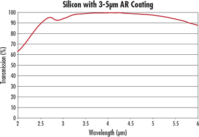 由于成本和密度较低,因此采用光学等级硅制作而成的TECHSPEC®硅(Si)窗口片成了应用于1.2 - 7μm光谱范围的热门产品。硅的密度很低(锗或硒化锌的一半),所以非常适合用于重量敏感的应用,特别是那些介于3-5μm范围之间的应用。其密度为2.329 g/cm3,努氏硬度则为1150。因此,它比锗更坚硬并且更加不易碎裂。