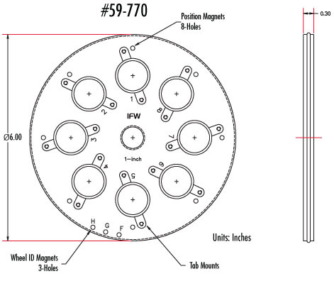 电动滤光片转轮可选配两种可互换的滤光片固定器。8位固定器最多可装8个直径为25mm和1",厚度高达5.5mm的滤光片。5位固定器最多可装5个直径为50mm,厚度高达5.5mm的滤光片。每个滤光片固定器可以很方便地从电动滤光片转轮拆卸下来,而不需借助任何工具。铰链门由一个指旋螺钉固定,打开以后,就可取出滤光片固定器并换上另外一个。滤光片固定器上配有0.75mm和1.5mm厚的隔圈来适应不同厚度的滤光片。各个滤光片用两个可移取式塑料片固定。