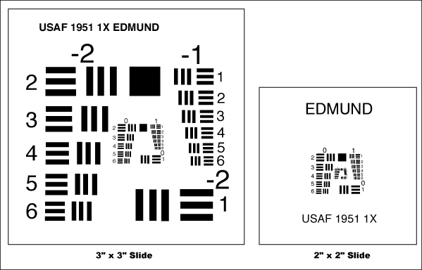 鉴别率测试片以及USAF 1951测试图案可用在正片(图案镀铬,背景不镀),或负片(图案不镀,背景镀铬)。正片形式推荐用在视觉系统的质量控制以及测试仪器上。负片形式通常将镀层镀在背面,可用在高倍显微镜头上。采用盒装,带分辨率值对应表。本产品符合美军标MIL-S-150A 规范。