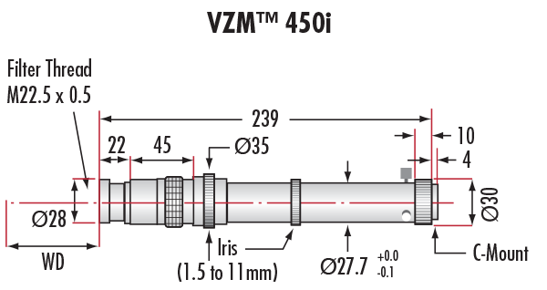 | Additional VZM 450 Lens Specifications | ||
