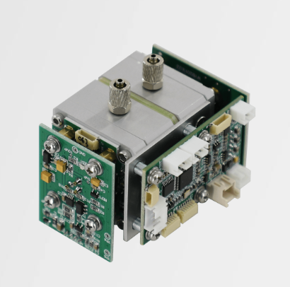 模块采用非分散红外吸收法原理,由宽谱段红外辐射光源、气室、探测器和信号控制与处理电路等组成,通过探测气体吸收前后的光强衰减分析气体浓度。模块采用高性能宽谱段红外辐射光源和原创设计的新型多次反射型长光程红外气室,实现了高稳定性和低检出限,相对于进口模块,同等检出限指标下,体积更加小巧,方便集成于各种气体分析仪;气室光程可定制,气室内壁不影响光学过程,因而光程更加稳定,测量结果更加可靠。