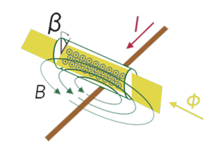 法拉第磁光效应中,当线偏振光沿着磁场方向穿过法拉 第磁光晶体时,其偏振方向会发生旋转,旋转的角度与磁场 大小有关。基于法拉第磁光效应可以通过检测线偏振光偏振 面的旋转角度来检测磁场,如果磁场由电流产生,则可以测 量电流。