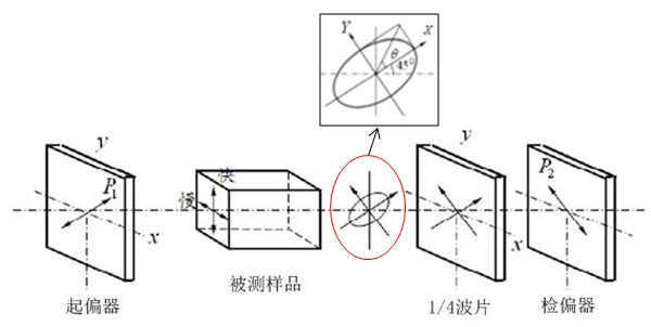 该仪器基于Senamont法(单1/4波片法)的偏光测量原理,原理图如下图所示: