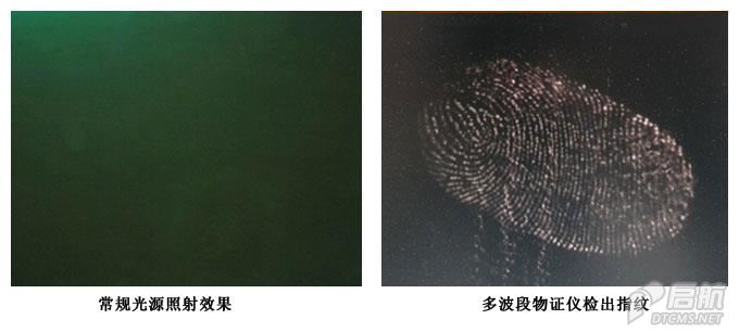 3)对汗液指纹,灰尘指纹、潜血指纹及油脂指纹等具有直接发现功能,远优于其他光源。