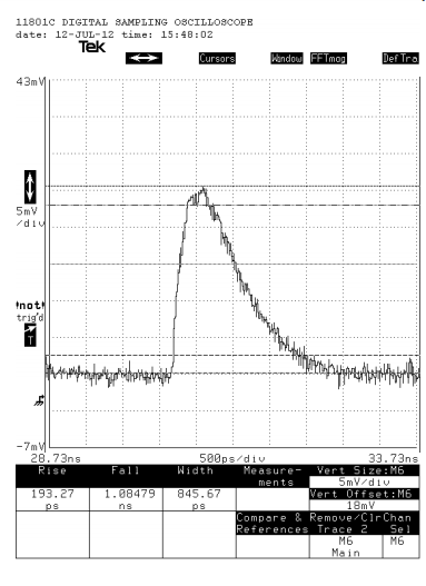 使用50G采样示波器得到的12ps锁模激光器的波形图